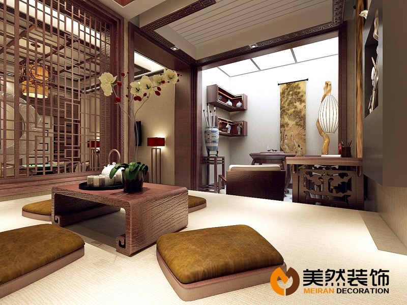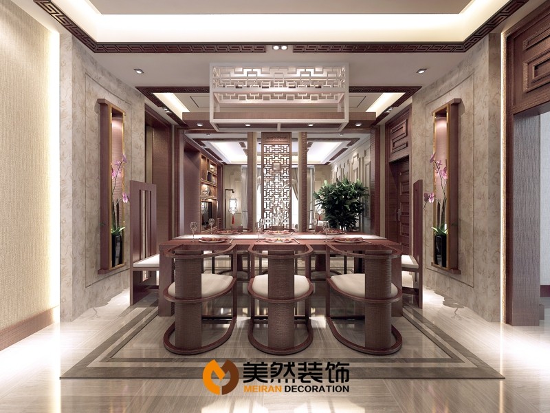 本案追求高雅簡潔卻又低調(diào)的淡雅氣質(zhì)。這是一個三層的別墅,一層是起居室和餐廳,二層則是設(shè)計作為十分私密的私人空間,是主人家的臥室和主要活動空間,生活得精致通常是以舒適作為基本,然后是周到。地下一層是娛樂空間。運(yùn)用現(xiàn)代東方主義設(shè)計,以耐人尋味的紅胡桃色作為主背景,一改往日繁瑣冗雜的修飾手法,用沉穩(wěn)的筆觸勾勒出溫婉典雅氣質(zhì),糅合空間的色調(diào),一切仿佛渾然天成。相近色系完美的跳躍搭配使得空間有著優(yōu)雅的變化,隨處都展示著主人超脫的審美觀和悠閑淡然的氣質(zhì)